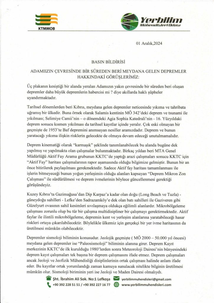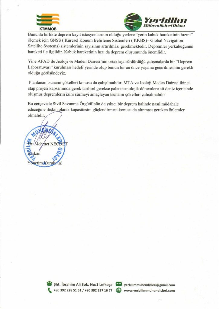 Depremler sismoloji biliminin konusudur. Jeolojik geçmişte ( MÖ 2000 – 50.000 yıl öncesi) meydana gelen depremler ise “Paleosismoloji” biliminin alanına girer. Deprem Kayıt merkezinin KKTC’de ilk kurulduğu 1980’lerden sonra Meteoroloji Dairesi’nin bünyesindeki deprem kayıt çalışmaları tek başına bir deprem çalışmasını ifade etmez. Deprem çalışmaları ancak Jeoloji ve Jeofizik Mühendisliği disiplinlerinin ortak çalışması halinde anlam ifade eder. Bu kayıtlar ortak yorumlandığı zaman kamuya sunulacak nitelikte bilginin üretilmesi mümkün olur. Sismoloji biriminin yeri ise Jeoloji ve Maden Dairesi olmalıdır.
