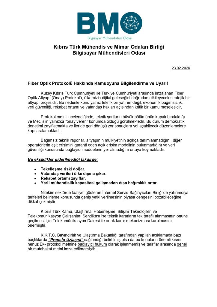 Kuzey Kıbrıs Türk Cumhuriyeti ile Türkiye Cumhuriyeti arasında imzalanan Fiber Optik Altyapı (Onay) Protokolü, ülkemizin dijital geleceğini doğrudan etkileyecek stratejik bir altyapı projesidir. Bu nedenle konu yalnız teknik bir yatırım değil; ekonomik bağımsızlık, veri güvenliği, rekabet ortamı ve vatandaş hakları açısından kritik bir kamu meselesidir.