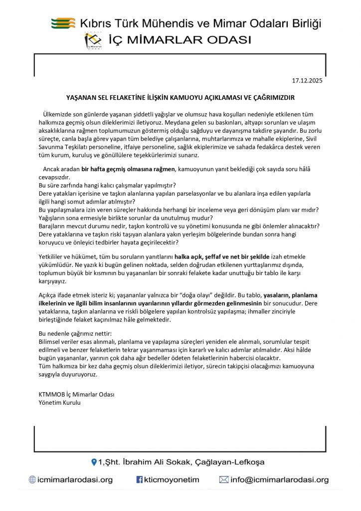 Açıkça ifade etmek isteriz ki; yaşananlar yalnızca bir “doğa olayı” değildir. Bu tablo, yasaların, planlama ilkelerinin ve ilgili bilim insanlarının uyarılarının yıllardır görmezden gelinmesinin bir sonucudur. Dere yataklarına, taşkın alanlarına ve riskli bölgelere yapılan kontrolsüz yapılaşma; ihmaller zinciriyle birleştiğinde felaket kaçınılmaz hâle gelmektedir.
